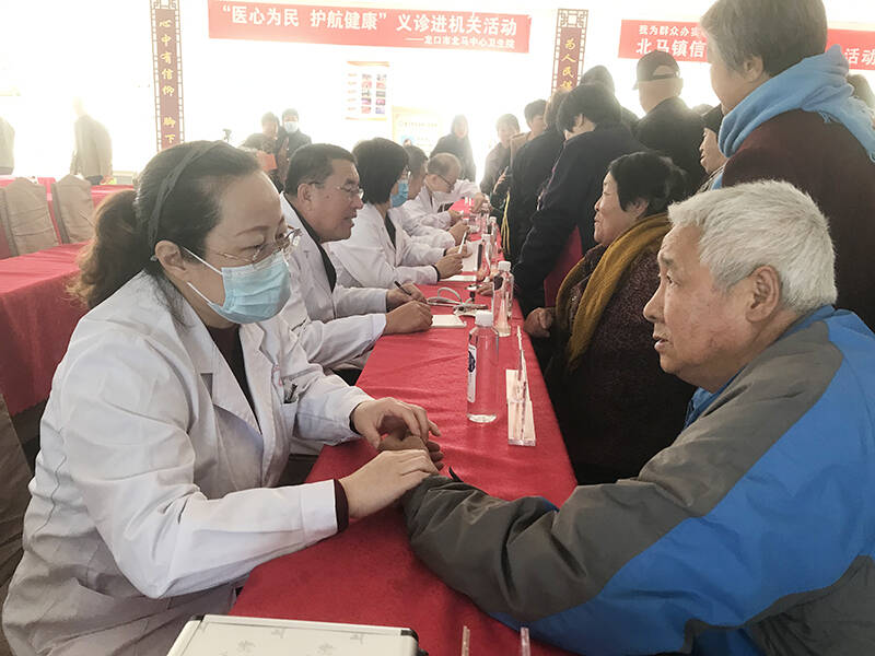 一大早,北马镇北村党群服务中心里便人头攒动。“听说今天有送药义诊活动,我们早早就过来了。”村民赵书姣说。